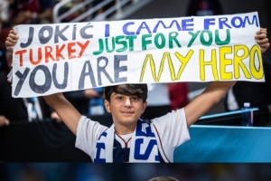 欧洲杯官方晒图,小球迷举牌:约基奇,我从土耳其过来只为看你,你是我的英雄!