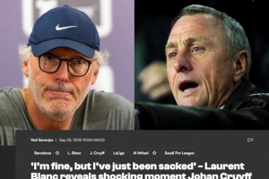 “于是我心里想:‘我要去巴塞罗那,然后签约。’这很有趣,我当时甚至已经拿到了合同。当我到达巴塞罗那时,克鲁伊夫对我说:‘好吧洛朗,你将与我们签一份两年合同,然后我们会踢这样的足球。今天晚上我带你去一家餐厅,我们聊聊具体怎么踢球。’但是一个小时后,他就被解雇了。