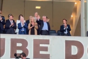 球队功勋教练穆里尼奥也来到现场观战,现场的观众们为他献上了热烈的掌声。
