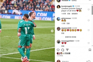 萨拉赫没有为照片进行任何配文,但不到半小时已获得5.7万次点赞,有球迷也在评论区盛赞他为英超历史最佳。