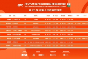 中甲第26轮具体裁判安排如下(详情如图):