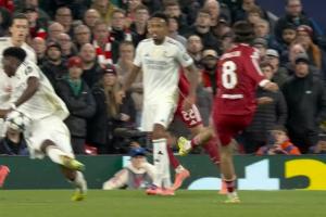 体育资讯11月05日讯 利物浦vs皇马第31分钟,索博打门击中琼阿梅尼手臂,裁判检查点球,VAR介入。